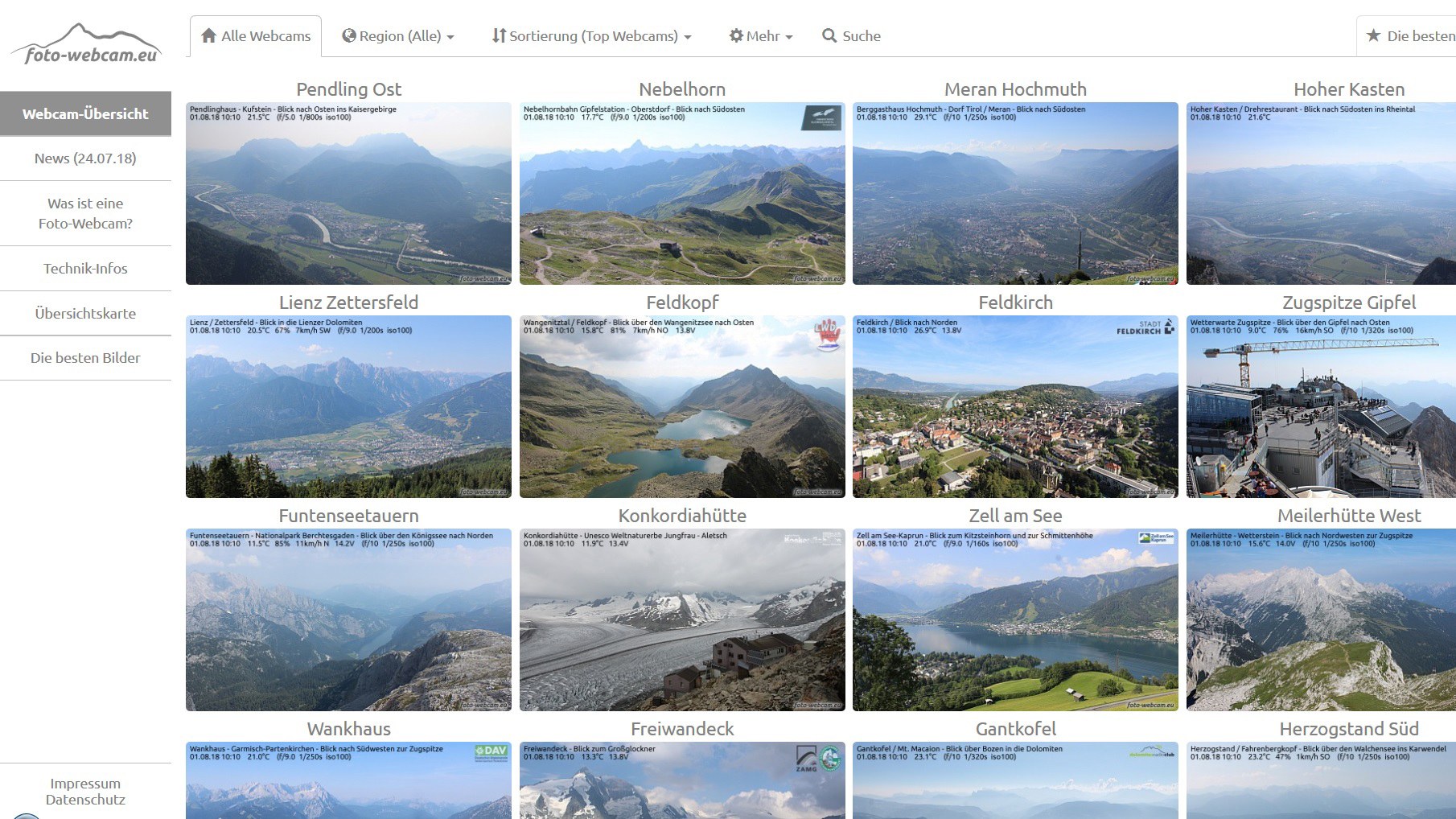 Tausende Kameraeinstellungen werden kostenlos ins Internet gestellt, wie beispielsweise durch die Plattform foto-webcam.eu. Diese zeigen einen Ausschnitt von Himmel und Erde und geben Aufschluss über Bewölkung, Schneebedeckung und anderes.