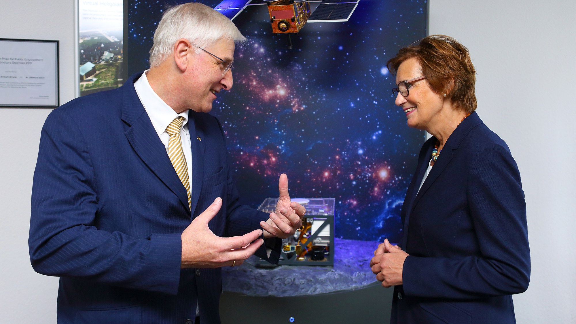 Am 10. Juli 2018 besuchte Sybille Benning (CDU) MdB anlässlich des Workshops zur Förderung von Frauen in Führungspositionen den DLR-Standort Berlin-Adlershof. Sie wurde dort von Prof. Hansjörg Dittus, DLR-Vorstand für Raumfahrtforschung und -technologie, begrüßt.