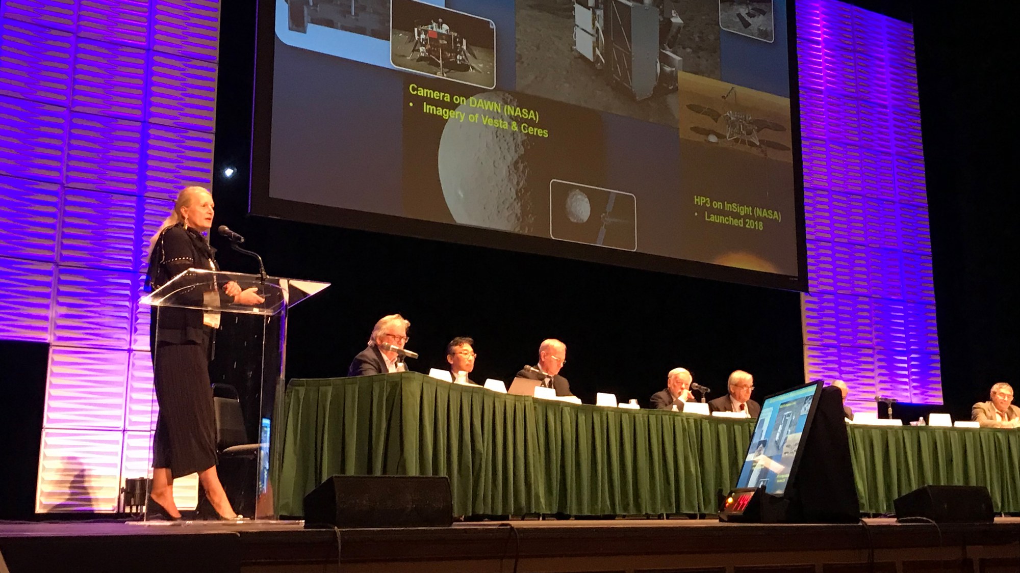 Prof. Pascale Ehrenfreund, Vorstandsvorsitzende des DLR sowie Prof. Hansjörg Dittus, DLR-Vorstand für Raumfahrtforschung nahmen an der Sitzung "Internationale Koordination von Explorationsaktivitäten" teil.