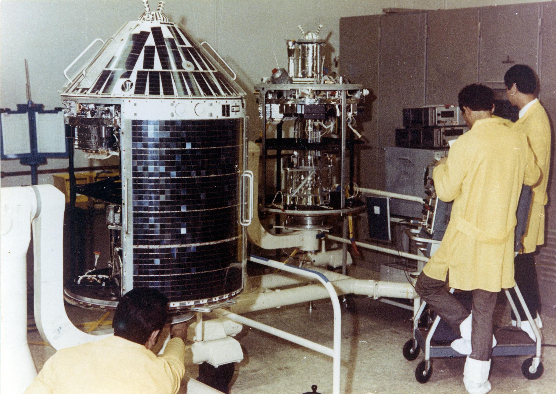 Der erste deutsche Forschungssatellit AZUR / GRS A (German Research Satellite) im Integrationsraum.