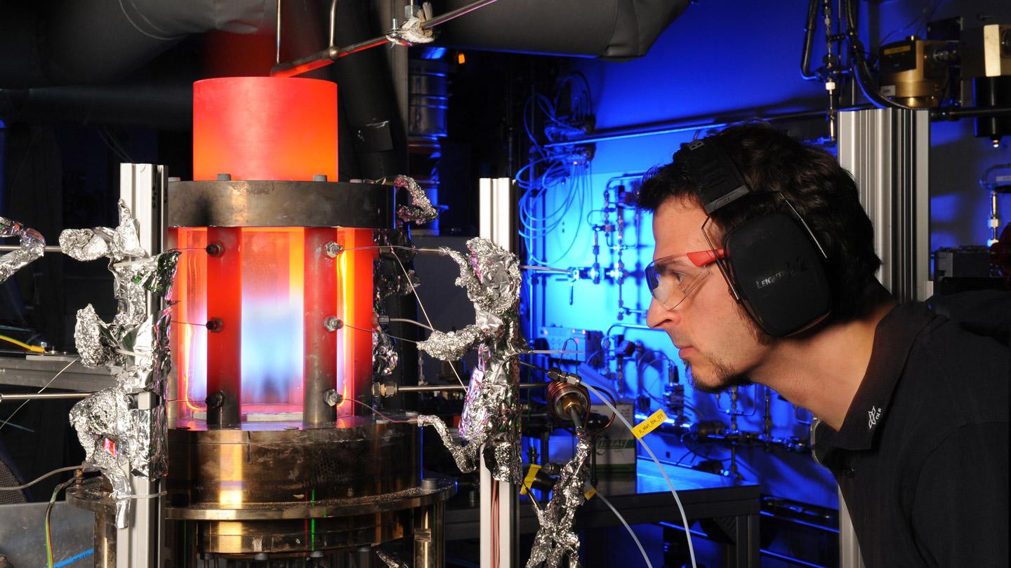 Bei der Verbrennung fossiler Brennstoffe spielen vor allem Stickoxide eine unangenehme Rolle. Sie werden für den sauren Regen verantwortlich gemacht und sind zudem schädlich für die Atemwege. DLR-Forscher konnten nachweisen, dass das Prinzip der sogenannten flammenlosen Verbrennung ("FLOX" = Flameless Oxidation) unter gasturbinentypischen Bedingungen eine stickoxidarme und zuverlässige Verbrennung im Kraftwerksbereich verspricht