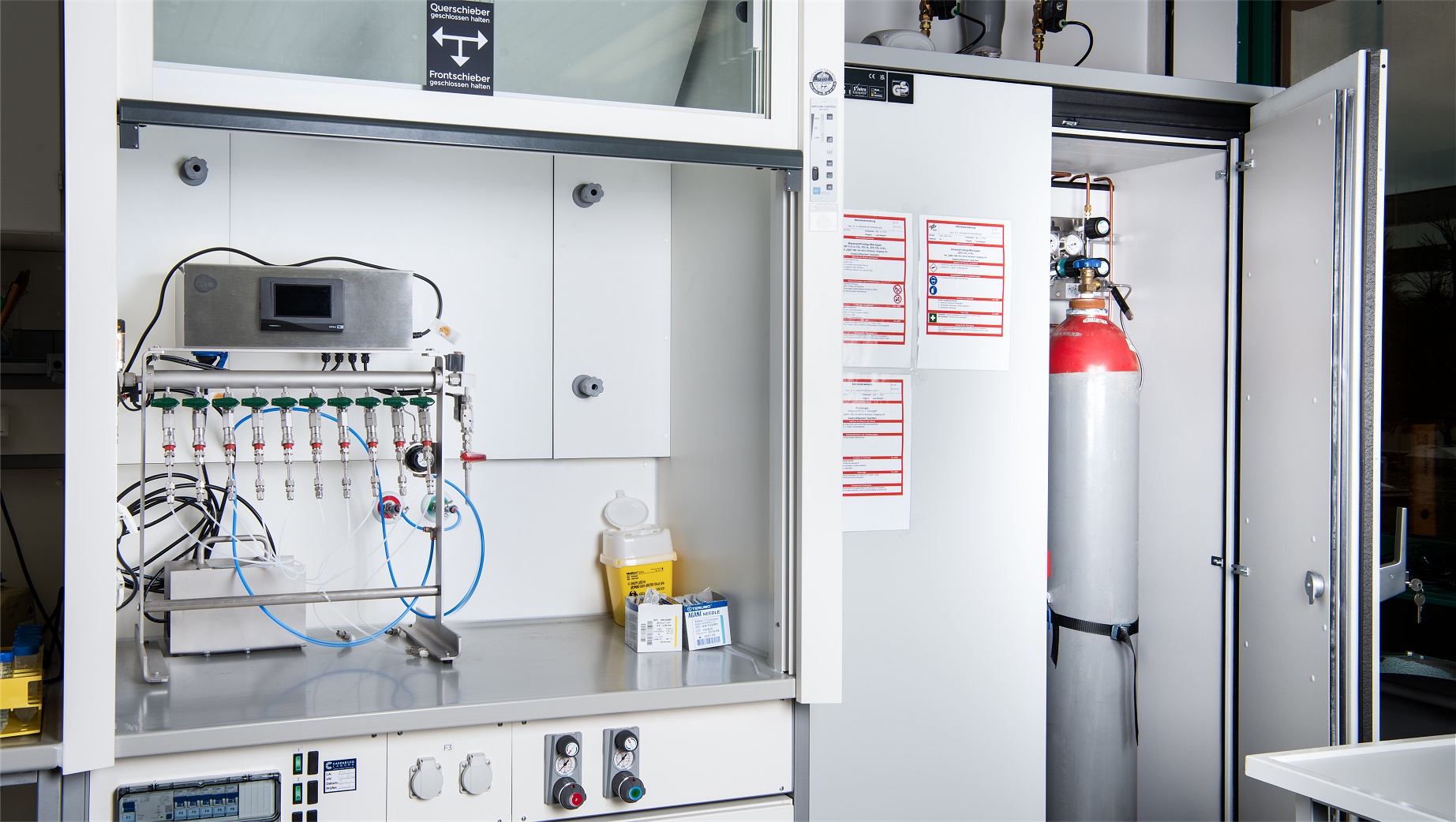 Zum Austausch der Gasatmosphäre in Kulturflaschen für die Anzucht von Mikroorganismen unter definierten Gasen (z.B. sauerstofffrei).