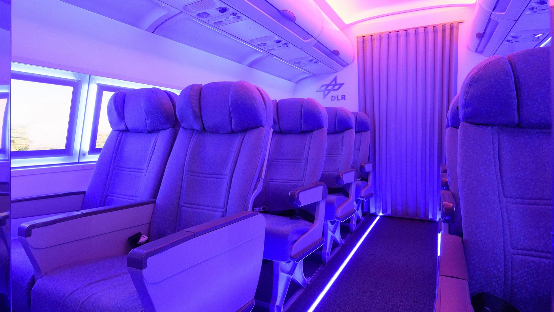 Mit dem Kabinenmodul können Untersuchungen zum Passagierkomfort durchgeführt werden, indem beispielsweise verschiedene Farbkonzepte für unterschiedliche Atmosphäre während des Flugs untersucht werden.