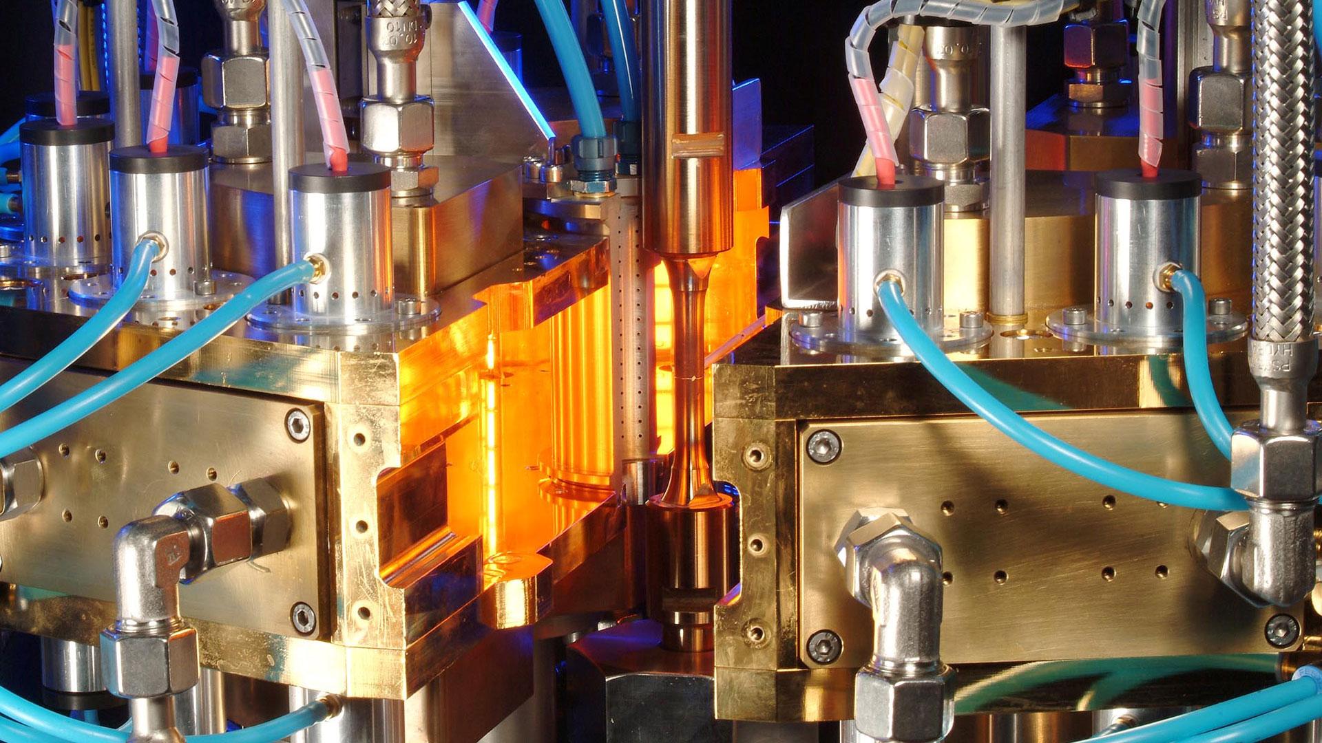 Für die Untersuchung des Werkstoffverhaltens unter komplexen betriebsnahen Beanspruchungen sind Versuchseinrichtungen aufgebaut, mit der sich die thermischen und mechanischen Ermüdungslasten innen gekühlter Flugzeugturbinenschaufeln auf Laborproben aufbringen lassen.