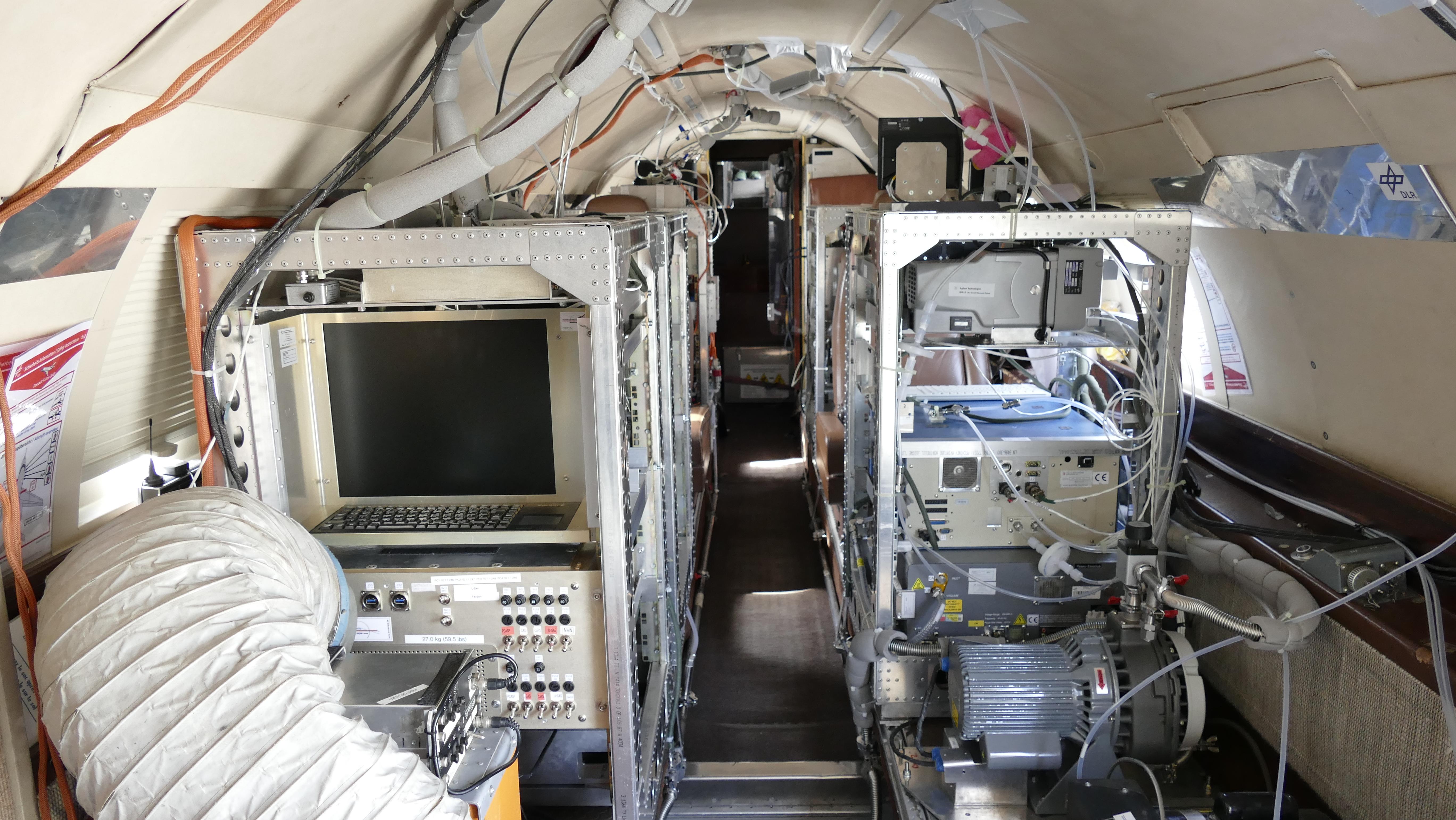 Missionsinstrumentierung in der Kabine des Forschungsflugzeug Falcon 20E-5 (D-CMET)