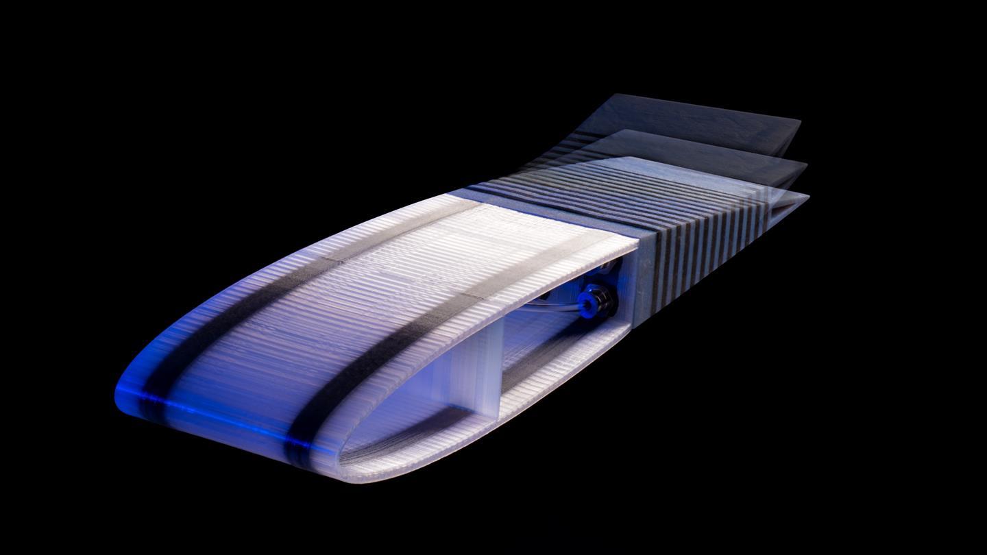 Mit der Kombination von festen und flexiblen Materialien ist mittlerweile der 3D-Druck formvariabler Flügelkanten möglich, die über elastische luftdruckgesteuerte Zellen verfügen.