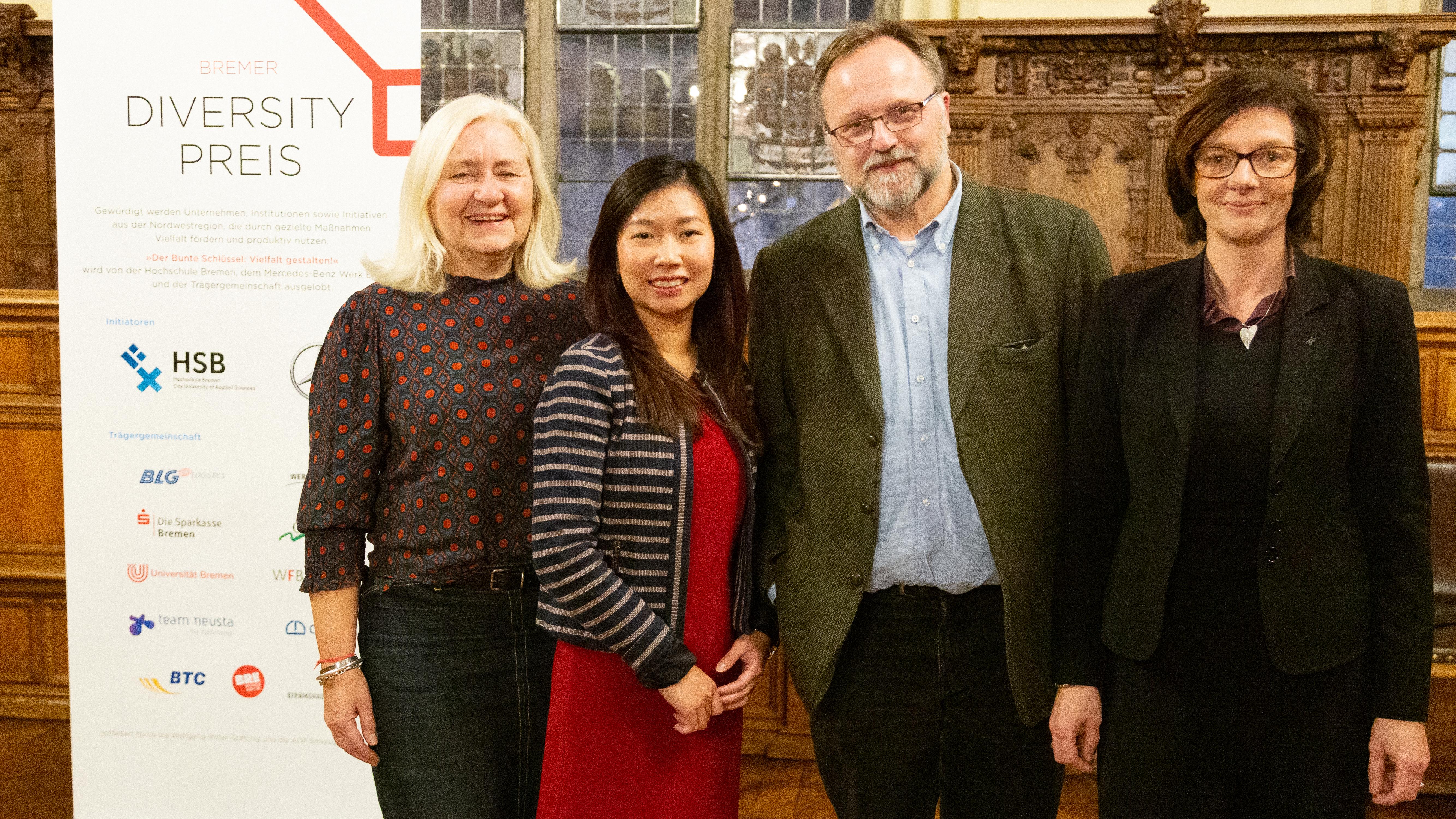 Nahmen den Preis für das DLR entgegen (von links): Rita Freisen, Quynh Thuy Trinh, Lars-Christian Schanz und kommissarische Standortleiterin des DLR Bremen Anke Kovar.