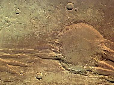 Das Bild wird von einem 55 Kilometer großen Einschlagkrater dominiert. Der Prozess der Riftbildung hat hier die Milliarden Jahre alte Impaktstruktur, d.h. den Einschlagkrater regelrecht zerteilt, so dass sich drei deutlich zu erkennende parallel verlaufende Horst-und-Graben-Einheiten bildeten. Intensive Erosionsprozesse verschütteten die Gräben im Inneren des Kraters später wieder mit Material von den zwei Kilometer hohen Kraterrändern und von außerhalb des Kraters. Das Bild wurde von der hochauflösenden Stereokamera HRSC (High Resolution Stereo Camera) an Bord von Mars Express aufgenommen und vom Institut für Planetenforschung des Deutschen Zentrums für Luft- und Raumfahrt (DLR) und dem Institut für Geologische Wissenschaften der Freien Universität Berlin prozessiert. Mars Express ist eine Mission der Europäischen Weltraumorganisation ESA