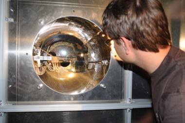 Der mit Lampen betriebene Prüfstand im neuen Test- und Qualifizierungszentrum (QUARZ) simuliert das Sonnenlicht und testet, wie gut Absorberrohre dieses Licht in Wärme umwandeln können. Das Absorberrohr ist im Prüfstand auf der rechten Seite hinter der runden Öffnung zu erkennen.