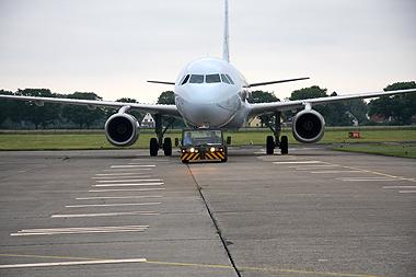 Beim sogenannten Taxi-Vibration-Test (TVT) wird eine Vielzahl von Schwingungsformen wie Flügelbiegung und -verdrehung erfasst. Diese werden bereits beim Rollen des Luftfahrzeugs - hier der DLR-Forschungsflieger ATRA - durch Unebenheiten des Bodens angeregt.