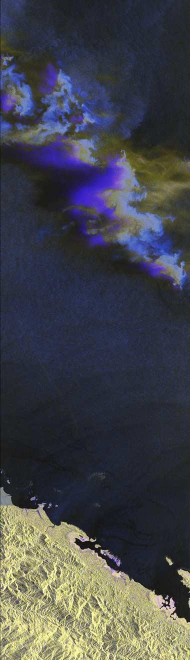 Das TerraSAR-X-Bild zeigt eine Gewitterzelle mit außergewöhnlich starken Niederschlägen vor der karibischen Küste Panamas, die in der oberen Bildhälfte als schlierenhafte Erscheinung zu sehen ist. Die aufgenommene Szene erstreckt sich über etwa 18 Kilometer mal 64 Kilometer und wurde im Dualpolarisationsmodus erzeugt, denn hiermit lässt sich der Informationsgehalt einer Aufnahme deutlich steigern.