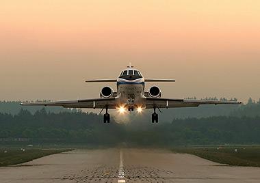 Das DLR-Messflugzeug Falcon 20E C-MET beim Anflug auf den Forschungsflughafen des DLR in Oberpfaffenhofen.