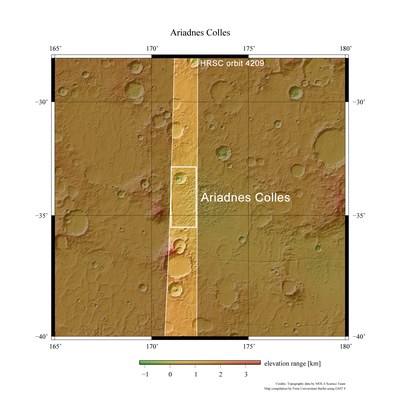 Topographische Übersichtskarte der Umgebung von Ariadnes Colles