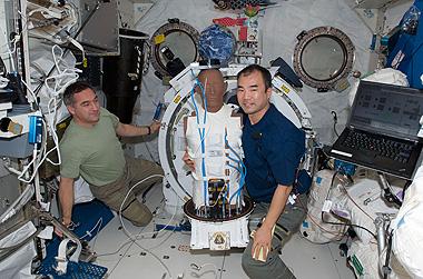Der japanischen Astronauten Noguchi (rechts) installierte das Phantom.