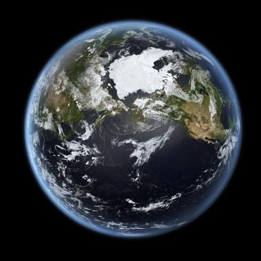 Auf diesem Bild wurde der Zustand des Nordpolarmeeres im Jahr 2002 festgehalten. Das globale, flächendeckende Monitoring der Umwelt gehört zu den zentralen Aufgaben der satellitengestützten Erdbeobachtung. Das Deutsche Fernerkundungsdatenzentrum des DLR betreibt dazu unter anderem die weltweiten Empfangseinrichtungen. Anhand dieser Daten können Services entwickelt werden, die dem Erhalt der Umwelt und der Verbesserung der Lebensqualität dienen.