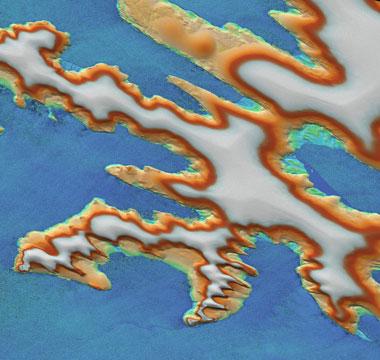 Beim zeitgleichen Blick der Zwillingssatelliten TanDEM-X und TerraSAR-X auf das Franz-Josef-Land im Nordpolarmeer werden selbst die Bewegungen des Wassers eingefroren. Forscher aus der Ozeanographie oder der Klimaforschung können mit solchen Aufnahmen beispielsweise die Meeresströmung genau untersuchen.