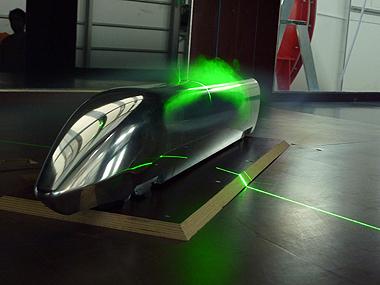 Strömungssichtbarmachung durch Laser in der Seitenwind-Versuchsanlage