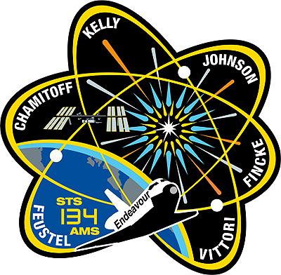 Als symbolisch kann man das Missionslogo von STS-134 betrachten. Im Zentrum ist der Urknall dargestellt, umgeben von Elektronen die einen Atomkern umkreisen. Das die Internationale Raumstation anfliegende Space Shuttle streift den Erdhorizont auf dem Weg, um ein neues Tor beim Verständnis unseres Universums aufzustoßen.