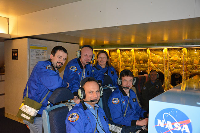 "Uns geht es darum, die an Bord gemachten einzigartigen Erfahrungen des Wissenschaftsbetriebs auf der fliegenden Sternwarte unseren Schülern möglichst realistisch zu vermitteln und unsere Begeisterung weiterzugeben", bestätigte die gesamte Gruppe. So konnten die Pädagogen im Flug 143 vom 4. auf den 5. Februar 2014 unter anderem miterleben, wie der Kern der Galaxie IC342 in der Linie des einfach ionisierten Kohlenstoffs [CII] bei 1900,5369 THz erfolgreich kartiert wurde, und in Richtung des Kohlenstoffsterns IRC+10216 erstmals der Nachweis eines kosmischen HCN-Lasers im fernen Infrarot gelang. Die Blausäure (HCN) in der nahen Umgebung der Sternoberfläche - also der Photosphäre - wird bei diesem Objekt ähnlich wie ein Laser angeregt: Die Anzahl der pro Zeiteinheit durch induzierte Emission entstehenden Photonen ist größer als die Anzahl der in der gleichen Zeiteinheit absorbierten Photonen (Laserprinzip oder Besetzungsinversion).