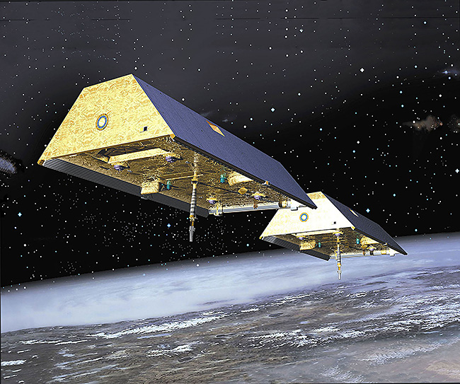 Bild 3: Künstlerische Darstellung der beiden GRACE-Satelliten, Bild: DLR CC-BY (3.0)