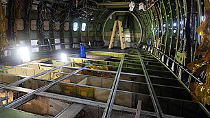 Auch im Inneren ist nicht mehr zu erkennen, dass es sich hier um ein fliegendes Observatorium handelt. Alle Konsolen und Elektro-Schränke wurden ausgebaut, sowie die Seitenverkleidungen und alle nicht benötigten Fußbodenplatten.