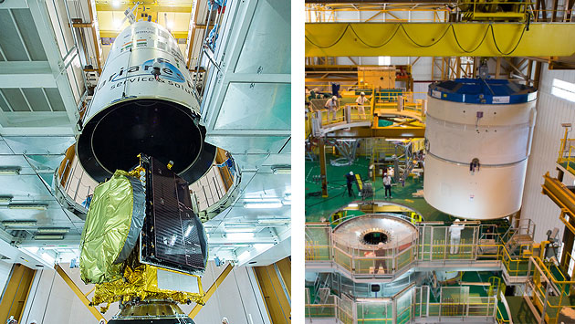 In der Spitze der Ariane-Rakete ist Platz für zwei Satelliten, die übereinander angeordnet werden. Beim Start werden die Satelliten durch die aerodynamisch geformte Nutzlastverkleidung geschützt. Durch die hohe Geschwindigkeit der Rakete würden die Satelliten von der vorbeiströmenden Luft und den dadurch entstehenden aerodynamischen Kräften zerstört werden. Wenn die Ariane jedoch hoch genug und die Luft dünn genug ist, kann die schützende Nutzlastverkleidung abgesprengt werden. Durch die sehr dünne Luft in 120 Kilometer Höhe entstehen trotz der hohen Geschwindigkeit von über 8000 Kilometer pro Stunde keine zerstörerischen Kräfte mehr an den Satelliten.