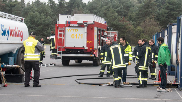 Mit der Wahl des alternativen Kraftstoffs für den kommenden Flugtag beginnt noch am Vorabend die Arbeit des Bodenteams in Manching auf dem Gelände der Wehrtechnischen Dienststelle für Luftfahrzeuge und Luftfahrtgerät der Bundeswehr, kurz WTD 61, die das DLR bei der Abwicklung der Flugversuche logistisch unterstützt. Die Tanks des ATRA und der Tankwagen werden so weit wie möglich entleert, damit keine Vermischung mit dem Kraftstoff des vorausgegangenen Fluges stattfindet. Zudem entnehmen Forscher Proben nach jedem Flug aus den Flugzeugtanks, um eine genaue Laboranalyse für die spätere Auswertung nutzen zu können. Anschließend wird für den nächsten Flug aus einem der Tankcontainer auf dem Vorfeld, der gewählte alternative Kraftstoff in einen Tankwagen gepumpt. Hierfür musste extra ein Tankwart engagiert werden, der für die Dauer der Flugversuche vor Ort ist. Rund 12.000 Liter wechseln das Behältnis. Dabei vergehen schnell einmal über zwei Stunden. Der Tankwagen steht für den kommenden Flugtag bereit.