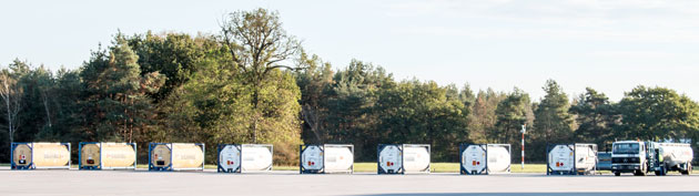 Dies ist der letzte kurze Weg, den der Kraftstoff für die Flugversuche zurücklegt. Im Sommer sind die acht 25.000 Liter Tankcontainer zuvor, mit dem eigens bei der Firma Sasol in Südafrika für die Messkampagne produzierten teil- und vollsynthetischen Kraftstoff-Variationen, in Durban verschifft worden und dann über den Hamburger Hafen und eine Zwischenlagerung in München nach Manching gelangt. Dort musste sich das Team vielen Anforderungen stellen. Für den Grundwasserschutz waren viele Vorkehrungen zu treffen, ein Krahn für das Abladen der schweren Tanks musste organisiert werden und eine erneute Zertifizierung der Kraftstoffe nach dem Transport mittels Probenentnahmen und Laboruntersuchungen war notwendig.