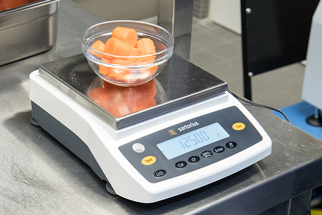 4:30 Uhr: Der Wecker klingelt, draußen ist es noch dunkel. Doch die Probanden wollen versorgt werden und so macht sich der Frühdienst des VaPER-Küchenpersonals auf den Weg ins :envihab, der Forschungsanlage des Instituts für Luft- und Raumfahrtmedizin. Dort findet derzeit eine Bettruhe-Studie im Auftrag der NASA statt. Während der zweimonatigen Studie liegen die Probanden 30 Tage lang ausschließlich im Bett bei 6 Grad-Kopftieflage, gegessen wird natürlich auch in dieser Position. Wichtig für die Ernährung in dieser Studie ist vor allem, dass sowohl die Zubereitung der Speisen als auch die Verabreichung und der Verzehr hoch standardisiert sind. Das heißt für die Probanden vor allem: Aufessen! Für das Küchenpersonal heißt es vor allem: Sehr sorgfältige Planung auf jeden einzelnen Probanden zugeschnittener Essenspläne, Rechnen der Mengen und Nährstoffe und immer wieder Abwiegen.