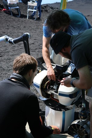 Mit gleich mehreren Containern voller Ausrüstung war ein Teil des Teams über Land und mit der Fähre nach Sizilien gefahren. In den ersten Tagen wurde ausgeladen, aufgebaut, kleinere Transportschäden behoben und ein Kommunikationsnetzwerk auf dem Berg eingerichtet. Am Ende der Mission soll ein Rover schließlich autonom zu einem Lander fahren, mobile Messstationen (Remote Units) abladen und sie an festgelegten Positionen auslegen, um die Aktivitäten des Vulkans und seine verschiedenen Schichten zu messen. Die Kommandos, mit denen der Rover seine Arbeit verrichten soll, kommen dabei aus einem kleinen eingerichteten Kontrollraum im Hotel in Catania.