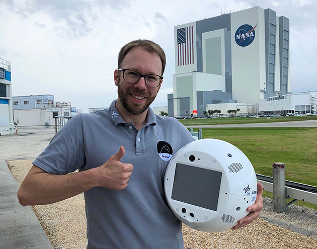 CIMON ist ein vom DLR Raumfahrtmanagement in Bonn gemeinsam mit Airbus entwickelter Astronauten-Assistent, der mit künstlicher Intelligenz (KI) von IBM ausgestattet ist. Mit seinen 32 Zentimetern Durchmesser und fünf Kilogramm Gewicht ist CIMON weltweit einzigartig und bewegt sich an der Schwelle des technologisch Machbaren. Dieser intelligente Astronauten-Assistent ist mehr als nur ein fliegendes Smartphone mit Sprachassistent. CIMON kann nämlich sehen, hören, verstehen, sprechen - und fliegen. Er ist ein erster Technologie-Demonstrator, mit dem Alexander Gerst während seiner horizons Mission testweise arbeiten soll. Mittelfristig soll CIMON auch andere Astronauten auf der ISS bei ihrer Arbeit in Schwerelosigkeit unterstützen. Ein großer Vorteil von CIMON ist, dass der Astronaut Dank dem sprachgesteuerten Zugriff auf Dokumente beide Hände frei zum Arbeiten hat. Als verantwortlicher DLR-Projektleiter für CIMON erlebte ich den SpaceX-Start live vor Ort am Kennedy Space Center. Ein Moment auch tiefer Demut. Die Realisierung von CIMON war ein Kraftakt für alle Beteiligten, zwei Jahre harter Arbeit, die nun in einen Moment unbändiger Freude gipfeln. Der Start selbst wirkte fast surreal, alle Anspannung fiel von mir ab: Go CIMON, go!