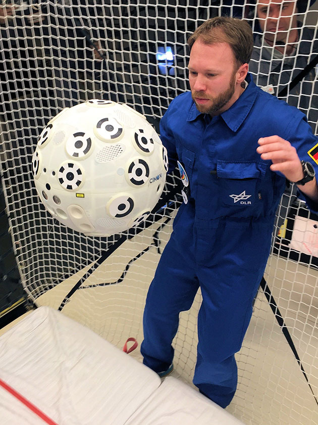 Ich durfte innerhalb eines Monats also zwei Raketenstarts erleben, Sojus mit Alexander Gerst und SpaceX CRS-15 mit CIMON. Doch ich kann noch einen draufsetzen (#traumjob), denn im März diesen Jahres war ich gemeinsam mit CIMON während eines Parabelflugs 31 Mal für jeweils 21 Sekunden schwerelos. Ein unglaubliches Erlebnis, über das ich eigentlich einen eigenen BLOG schreiben müsste. An dieser Stelle sei verraten: Beim Parabelflug testeten wir insbesondere die Orientierung, Navigation und Lenkung von CIMON, um für den Einsatz auf der ISS - in permanenter Schwerelosigkeit - optimal vorbereitet zu sein.