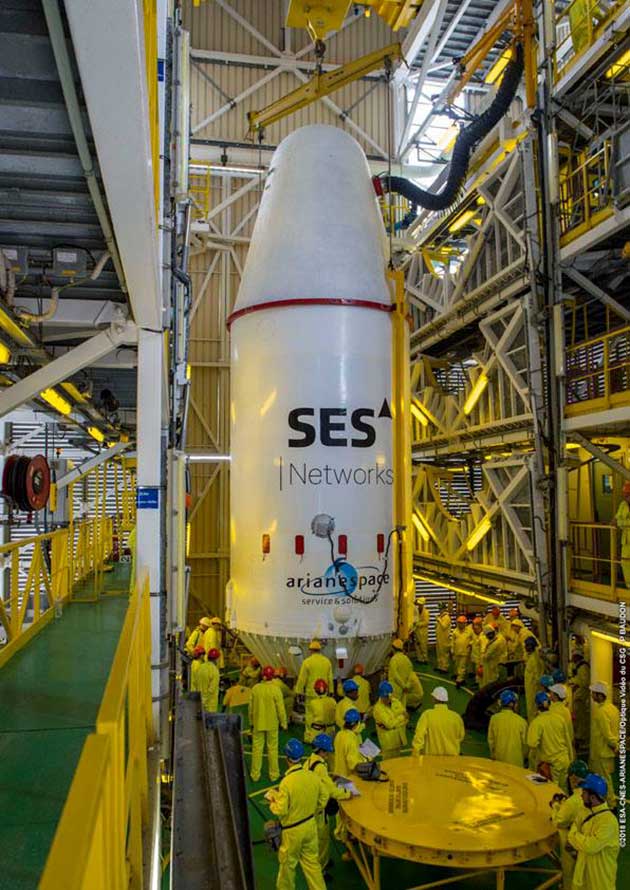 Unter der Nutzlastverkleidung an der Spitze der Rakete befinden sich vier Telekommunikationssatelliten. Jeder Satellit hat eine Startmasse von 700 Kilogramm und die Größe eines Kleinbusses. Die Satelliten sind Teil einer Satellitenkonstellation namens O3b der Firma SES. Zurzeit besteht die Konstellation aus zwölf Satelliten, die alle vom europäischen Startdienstleister Arianespace gestartet wurden. Es ist geplant, die Konstellation auf bis zu 20 Satelliten auszubauen.