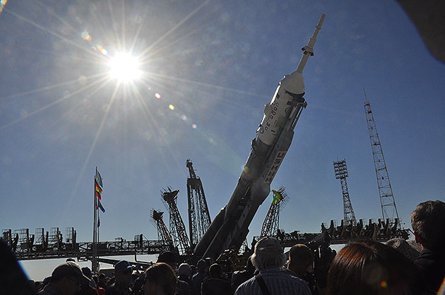 Am Montag, 4. Juni, waren wir beim Roll-Out der Sojus-Rakete und zu deren Transport zur Rampe dabei, wo sie innerhalb von einer Viertelstunde aufgerichtet wurde. Am Starttag, dem 6. Juni, wurde sie dann betankt. In den letzten 30 Sekunden vor dem Start wird es still auf der Besuchertribüne. Dann hört man das hochfrequente Zischen, das in das Röhren von 26 Millionen PS übergeht. Der Schub ist aufgebaut, die Klammern geben die Rakete frei, die langsam aufsteigt, immer schneller an Höhe gewinnt und die dünnen Wolkenfetzen durchstößt. Die ausgebrannten Booster fallen ab - für den Bruchteil einer Sekunde sieht man den sogenannten Korolev-Stern aufblitzen, der Moment, in dem die noch ausflammenden Booster gleichzeitig zu den Seiten hin abfallen. Die Sojus ist jetzt nur noch ein Leuchtpunkt und entschwindet im Himmel. Ein sehr emotionaler Moment, denn an so einem Tag wird mir und dem gesamten Team wieder bewusst, wofür wir die letzten zweieinhalb Jahre gearbeitet haben.