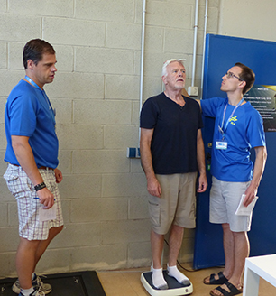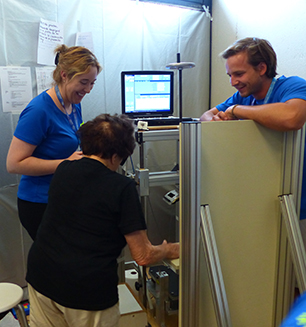 Auch bei dieser Station ist es immer wieder eine Herausforderung, den unterschiedlichen Nationalitäten die Bewegungsabläufe zu erklären, damit sie auch richtig umgesetzt werden können. "Aber das klappt immer irgendwie!", so Philipp. "Sowohl von der Messung und den Daten als auch vom persönlichen Kontakt her freuen wir uns jeden Abend schon wieder auf die neuen Probanden am nächsten Tag!", so die einhellige Meinung von Sarah und Philipp.