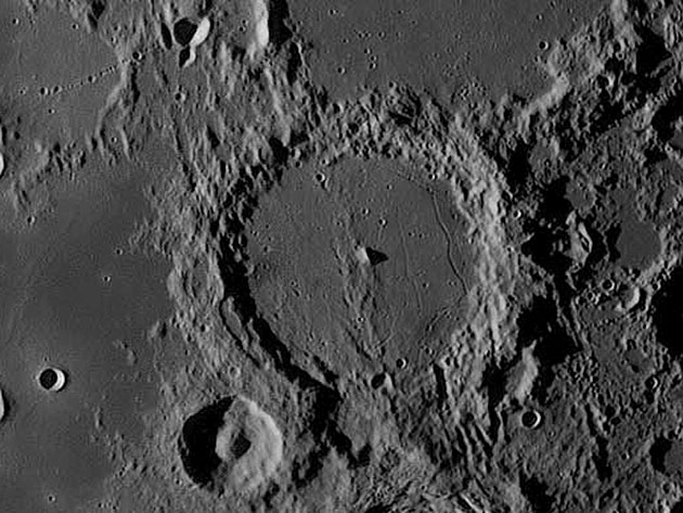 Im Vollmondbild oben ist von der Kraterform kaum etwas zu erkennen. Stattdessen fallen neben dem hellen Zentralberg eine Reihe dunkler Flecken auf dem Kraterboden auf, die in der Ansicht kurz vor Sonnenuntergang (unten) weniger prominent erscheinen. Heute weiß man, dass es sich hierbei tatsächlich um Ascheablagerungen vulkanischen Ursprungs handelt.