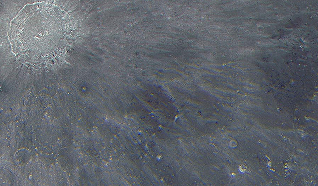 Aber wie kommt die Farbe ins Bild? Tatsächlich musste ich dafür die Geräte wechseln. Ein apochromatischer Refraktor mit 130 Millimeter Öffnung und 3600 Millimeter Brennweite diente als Objektiv für eine Vollformatspiegelreflexkamera vom Typ Canon 5D MKII. In weniger als einer Viertelstunde belichtete ich damit 542 Aufnahmen der vier Mondquadranten. Der Computer hat diese später zu einem rauscharmen Farbbild zusammengesetzt. Wegen der stärkeren Luftunruhe bei kürzeren Wellenlängen und der kleineren Fernrohröffnung zeigt dieses Farbbild deutlich weniger Details als das im nahinfraroten Licht gewonnene Schwarzweißbild.
