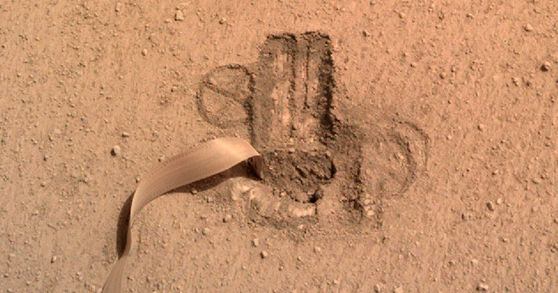 Das Kratzen hatte darüber hinaus bewirkt, dass die Höhenunterschiede am Rand der Grube zum Teil eingeebnet wurden – und damit das Platzieren der Schaufel einfacher geworden ist. Mit diesem Wissen und mit Unterstützung der Projektleitung haben wir beschlossen, den Maulwurf nun doch mit Hilfe der Schaufel etwas tiefer in den Boden zu bringen. Dazu würden wir allerdings nicht mit der Schneide drücken, sondern mit der 20 bis 30 Grad gegenüber dem Boden angewinkelten Schaufel. Dies ist zunächst einmal eine etwas einfachere, besser planbare und weniger zeitintensive Operation im Vergleich zu einer Abfolge von Kratzbewegungen; möglicherweise verbunden mit Hackbewegungen der Schaufel, um die Grube aufzufüllen. Ich denke, spätestens nach dem Verfüllen der Grube sollten wir dem Rückstoß genügend Kraft entgegensetzen können und der Maulwurf "gräbt" sich dann hoffentlich alleine tiefer in den Marsboden. Drückt die Daumen!