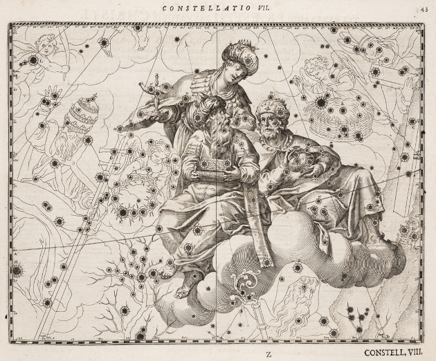 Es wurde auch versucht, altbewährte Sternbilder abzuschaffen und neue einzuführen. Die Sternbilder des Augsburger Juristen und Astronomen Julius Schiller sind ein herausstechendes Beispiel dafür. In seinem „Coelum Stellatum Christianum“, dem Atlas des christlichen Sternenhimmels des Jahres 1627, werden sämtliche Sternbilder nach biblischen Gestalten und Vorkommnissen benannt; der nördliche Himmel schöpft aus dem Neuen, der südliche aus dem Alten Testament, die zwölf Apostel bilden den Tierkreis. Und alles ist in einer seitenverkehrten Ansicht dargestellt so, wie ein überirdisches Wesen von außen auf das Himmelszelt schauen würde! Zudem waren die Sternbilder in ihrer barocken Darstellung derart mit Einzelheiten überladen, dass die Sterne eher wie ein schmückendes Beiwerk wirkten. Doch niemand hat Julius Schiller seinen kreativen Versuch, den Himmel christianisieren zu wollen, angekreidet. Sein „Christlicher Sternenhimmel“ war zwar hinsichtlich der Zahl schwacher Sterne eine Verbesserung zu der im Jahr 1603 erschienenen „Uranometria omnium asterismorum“ des Augsburger Astronomen und Rechtsgelehrten Johann Bayer (1572-1625), aber das Prachtwerk erlangte keine große Bedeutung.