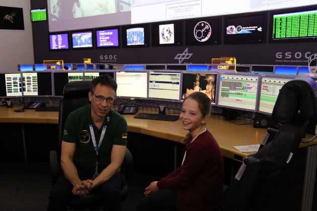 Dass ein Job beim Deutschen Zentrum für Luft- und Raumfahrt langweilig ist, das kann man wirklich nicht behaupten. Diese Woche durfte ich mich beispielsweise einmal als „Schauspieler“ betätigen: Wir hatten Besuch von der Kinderreporterin Martha und dem zugehörigen Filmteam, das für die Fernsehsendung „1, 2 oder 3“ einen Einspieler drehte. Das Storyboard sah vor, dass Moderator Elton (ich reibe mir verwundert die Augen – war „1, 2 oder 3“ nicht immer Michael Schanze? ;-) ) die 8-Jährige zur Recherche an das Raumfahrtkontrollzentrum „beamte“, wo sie „zufällig“ zunächst auf mich, dann in unserem Trainingskontrollraum auch auf Matthias Maurer traf, der gerade in der Raumstation beschäftigt war.