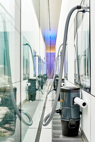 Danach werden die Probandinnen und Probanden mit ihrer Kammer in ihr jeweiliges Zimmer geschoben, damit sie auch während der insgesamt sechsstündigen LBNP-Phase in der „gewohnten Umgebung“ ihren Freizeitaktivitäten nachgehen können. Bequeme Matratzen und die Möglichkeit, sich vom Rücken auf die Seite zu drehen, tragen ebenfalls zum Komfort bei. Die Pumpen zur Erzeugung des Unterdrucks wurden außerhalb der Probandenstation aufgestellt, um die Geräusche im Probandenzimmer möglichst gering zu halten. Dafür mussten sogar die Fensterscheiben ausgetauscht werden, um eine Durchführung der Leitungen zu ermöglichen. Während der LBNP-Gegenmaßnahme werden die Vitalparameter der ProbandInnen und die Funktion der sechs Kammern von einem dreiköpfigen Team zentral überwacht und aufgezeichnet. All diese Maßnahmen führen dazu, dass die LBNP-Gegenmaßnahme bereits nach wenigen Tagen der Eingewöhnung zu einem völlig normalen Programmpunkt im Tagesablauf wird.