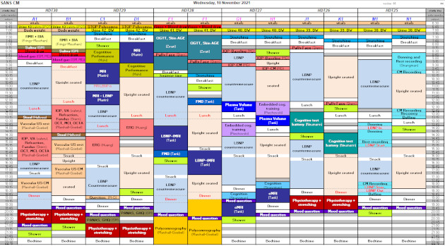 Bei SANS-CM, der Spaceflight-Associated Neuro-Ocular Syndrome Countermeasures study, werden sechs Unterdruckkammern eingesetzt, in denen die Probandinnen und Probanden mit der unteren Körperhälfte für täglich sechs Stunden liegen. Ziel ist es, die durch die Kopftieflage in die obere Körperhälfte verschobenen Körperflüssigkeiten wieder in die Beine und Füße zu „saugen“, damit eine durch den höheren Hirndruck entstehende Problematik an den Augen von Raumfahrenden verhindert werden kann. Langfristig könnte daraus eine neue Gegenmaßnahme für den Einsatz im All entwickelt werden, denn eine ähnliche Problematik entsteht auch bei Astronautinnen und Astronauten.