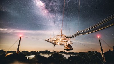 Genau ein halbes Jahrhundert ist es her, dass zum ersten Mal eine längere zusammenhängende Botschaft von der Erde mittels Radiowellen in die Tiefen des Weltraums hinein abgestrahlt wurde, um möglichen außerirdischen Zivilisationen Kunde von der Menschheit zu geben. So funkte am 16. November 1974 die 305-Meter-Riesenschüssel des Arecibo-Radioteleskops auf Puerto Rico um 18 Uhr Mitteleuropäischer Zeit (MEZ) 169 Sekunden lang mit einer mittleren effektiven Strahlungsleistung von dreimal 1012 Watt eine binär codierte, siebenteilige Nachricht, bestehend aus 1.679 Bit, in Richtung des Kugelsternhaufens Messier 13.