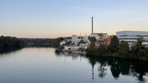 Blick auf das Paul Scherrer Institut (PSI) von der Aare aus.