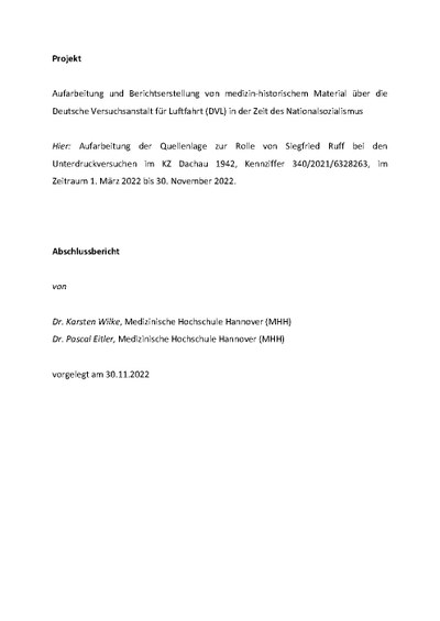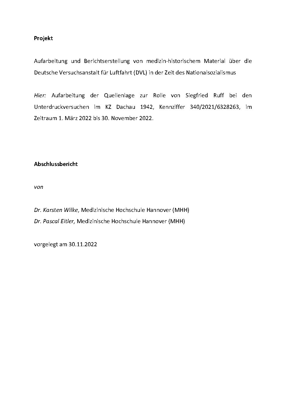 Historiker-Bericht über die Deutsche Versuchsanstalt für Luftfahrt (DVL) in der Zeit des Nationalsozialismus