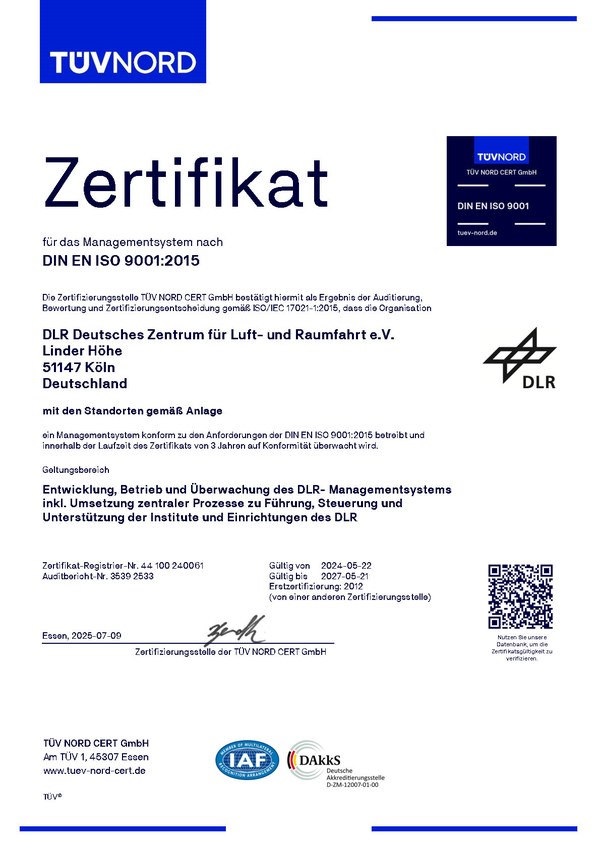 Das Ziel in der Qualitäts- und Produktsicherung des Deutschen Zentrums für Luft- und Raumfahrt (DLR) ist es, höchsten Ansprüchen an Qualität, Nachhaltigkeit und Umwelt in der Forschung, Entwicklung und im Management gerecht zu werden. Wir erreichen dies durch die Implementierung von Qualitäts- und Umweltmanagement, Managementsystemen und deren Auditierung sowie Produktsicherung, um ausgezeichnete Forschungsergebnisse, Forschungsprodukte und Dienstleistungen zu garantieren.