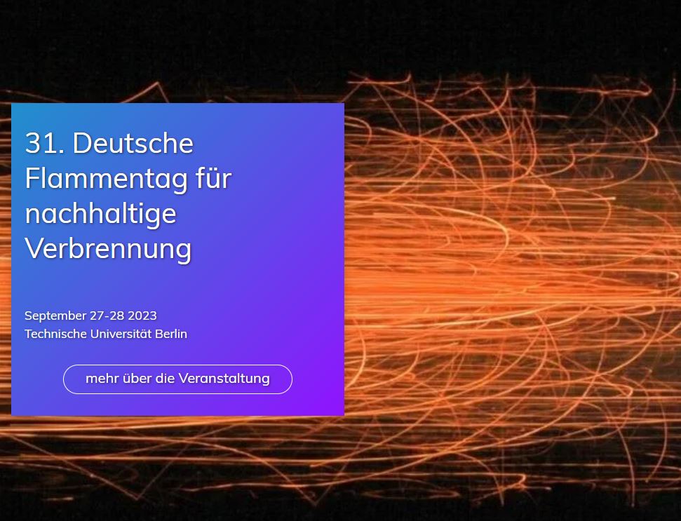 Die Deutsche Vereinigung für Verbrennungsforschung und die Deutsche Sektion des Combustion Institute veranstalten den 31. Deutschen Flammentag für nachhaltige Verbrennung am 27. und 28. September 2023 an der Technischen Universität Berlin.