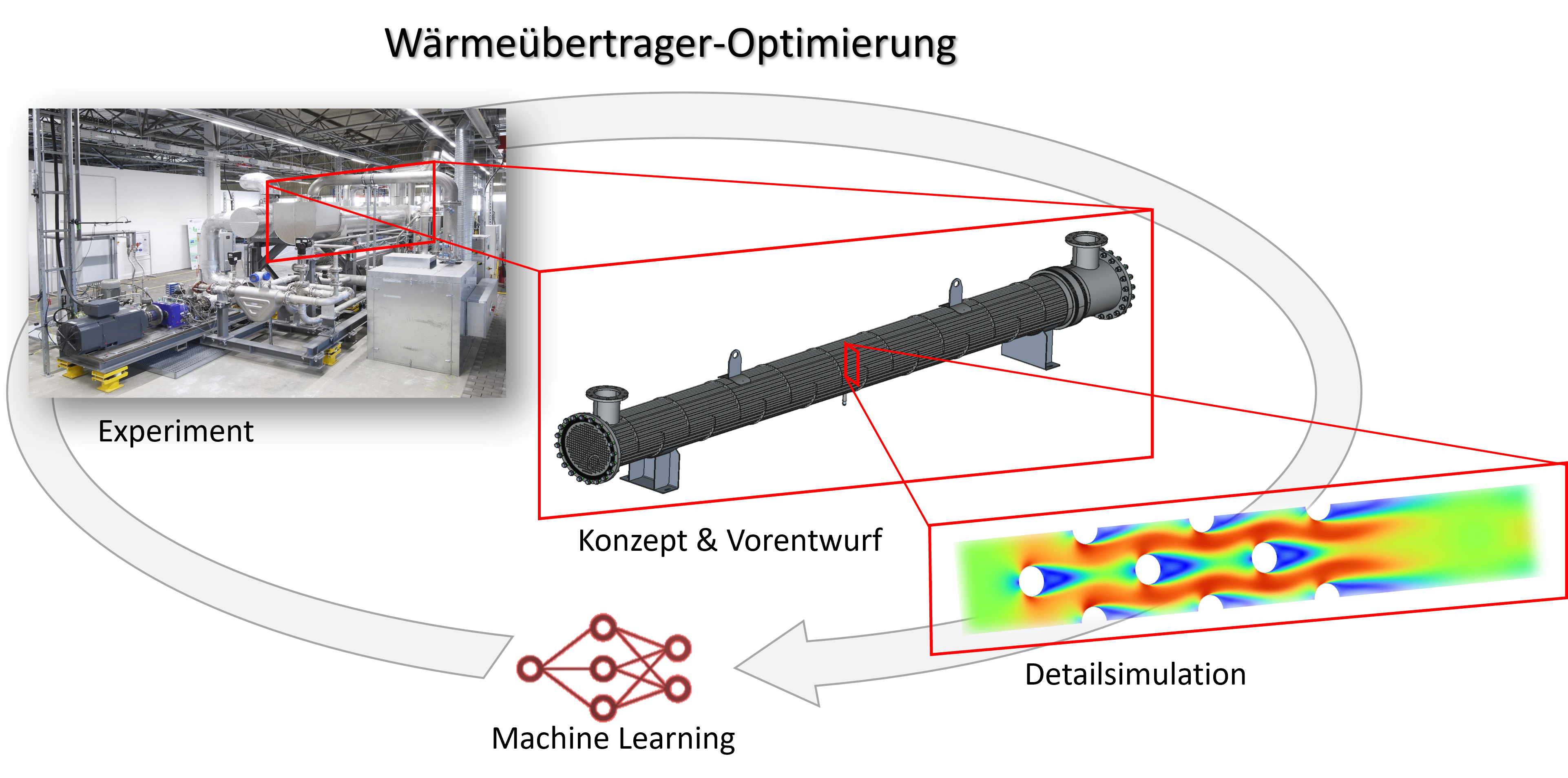 Im Rahmen dieses Projektes sollen daher validierte Auslegungstools für die relevanten Wärmeübertragertypen implementiert werden, welche dann für die verschiedenen Optimierungsaufgaben verwendet werden können. Dabei ist bei der Auswahl einer Berechnungsmethodik immer ein Kompromiss zwischen Berechnungszeit und Genauigkeit zu schließen. Für die Auslegung des Gesamtsystems bestehend aus mehreren Komponenten werden schnelle Vorauslegungstools entwickelt, welche die grundlegenden Eigenschaften von Wärmeübertragern abbilden können und eine Optimierung der Systemstruktur ermöglichen. Zusätzlich werden auch high-fidelity Analysen implementiert, welche Strömungsvorgänge im Detail bewerten können, um die Ergebnisse der Vorauslegung zu präzisieren. Für einen möglichst konsistenten Übergang zwischen diesen Entwurfsphasen werden Ergebnisse der high-fidelity Analysen in die Vorauslegungstools integriert sowie multi-fidelity Optimierungsprozesse implementiert. Abschließend werden die entwickelten Berechnungsmethoden anhand von bestehenden Wärmeübertragern validiert, um deren Genauigkeit zu bestimmen und den Gültigkeitsbereich abschätzen zu können.