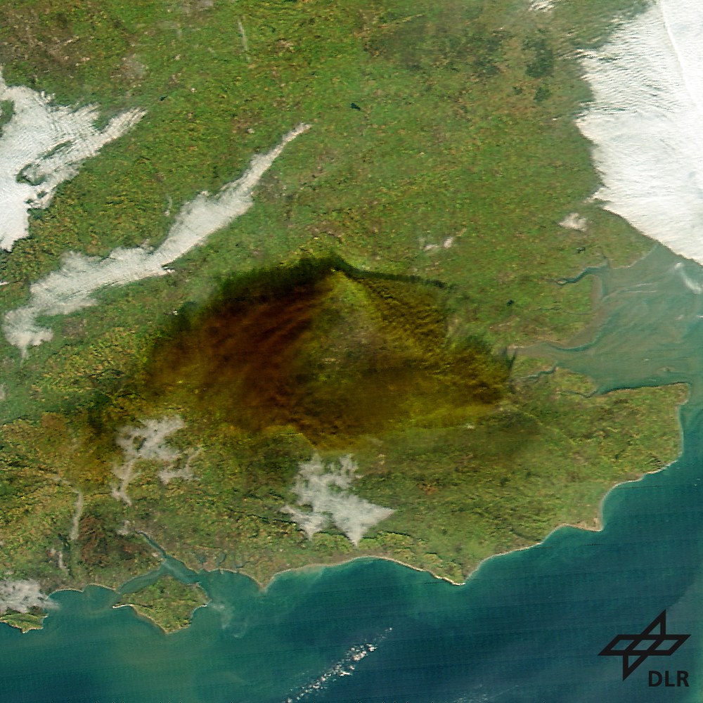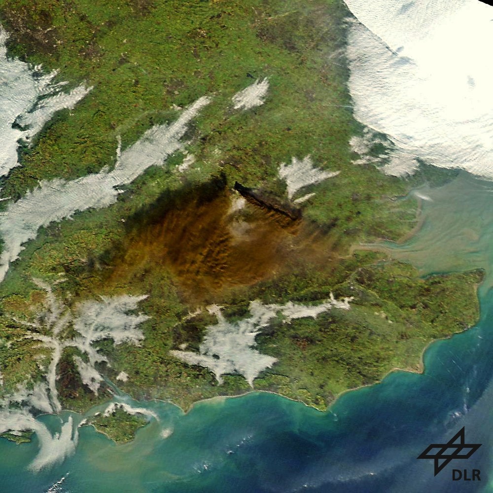 Die Satellitenaufnahmen zeigen die riesige Rauchwolke, die nach einem Brand in einem Treibstoffdepot nördlich von London am Sonntag über die britische Hauptstadt gezogen ist. Die aufsteigenden Rauchkegel und die durch die Luftströmung verteilte Rauchwolke sind deutlich zu erkennen.