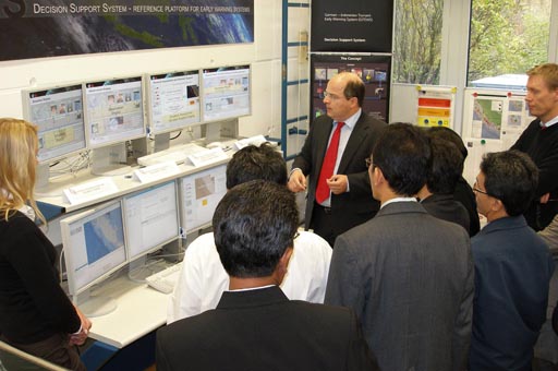 Auf bis zu zwölf Quadratmeter großen Leinwänden präsentiert die Helmholtz-Gemeinschaft deutscher Forschungzentren zusammen mit dem DLR vom 7. März bis zum 6. April in Brüssel Satellitenbilder des Deutschen Fernerkundungsdatenzentrums, des Instituts für Methodik der Fernerkundung und verschiedener Partner. In der großen Ausstellung erhalten Öffentlichkeit und Parlamentarier an prominenter Stelle im Herzen Brüssels die Chance, sich über das Potential und die Nutzung von Satellitendaten für die Erdbeobachtung zu informieren. Großformatige, farbintensive Ausdrucke der Bilder zeigen ungewöhnliche Ansichten von Wüsten, Gletschern, Vulkanen und Städten. Die Bilder vermitteln einen Eindruck, welche Informationen die Satellitendaten den unterschiedlichen Wissenschaftsdisziplinen liefern und welchen Beitrag diese damit zur Erforschung von Erde und Umwelt leisten.